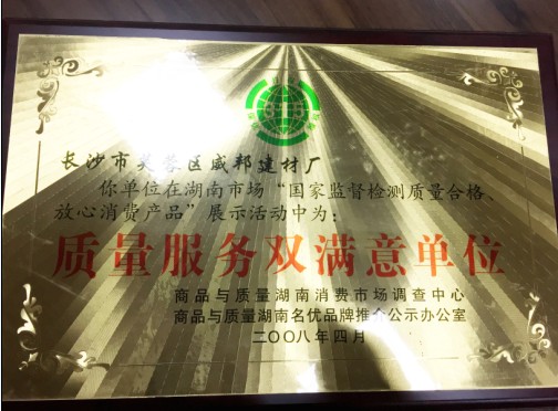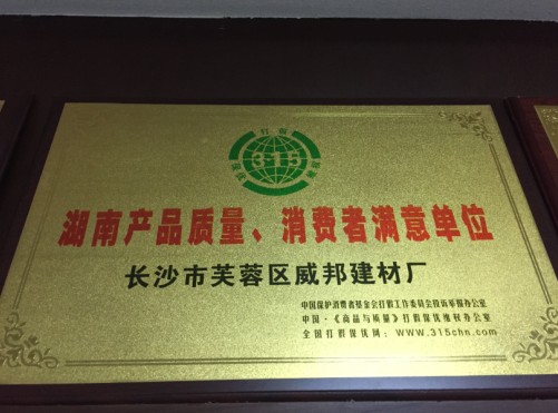 湖南威邦新材料有限公司2017年被评选质监局评选为湖南好产品